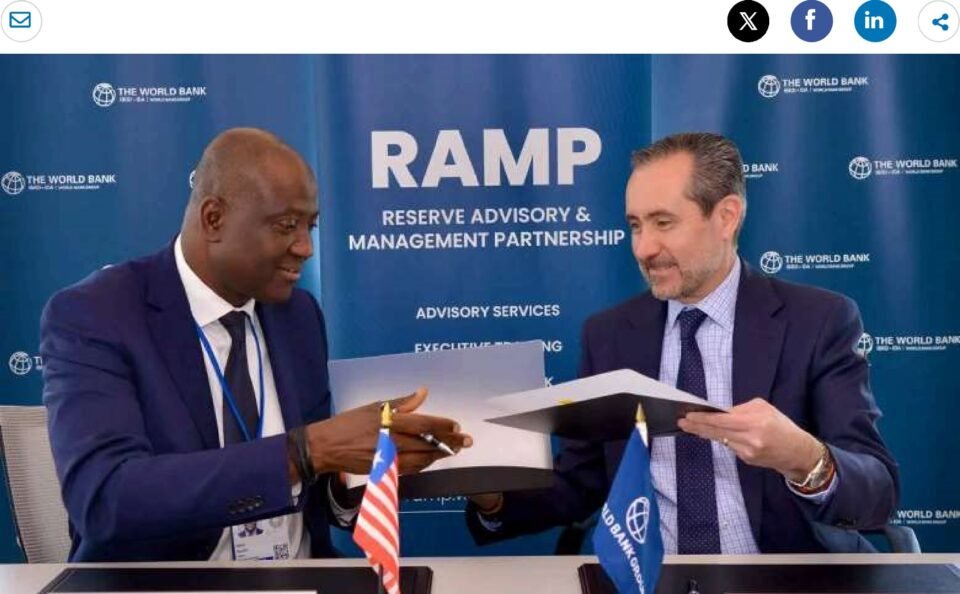 WASHINGTON April 23, 2025 – The World Bank announced the Central Bank of Liberia (CBL) as the newest Reserve Advisory & Management Partnership (RAMP) program member. CBL joins RAMP through a World Bank Group multi-donor trust fund to advance public asset management in lower-income, fragile, or conflict-affected states. Representatives from the Central Bank of Liberia and the World Bank signed a technical assistance agreement in Washington, DC, to formalize the partnership.