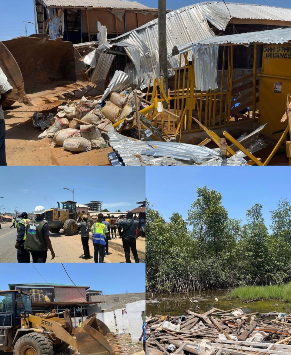 Monrovia – The Environmental Protection Agency (EPA) of Liberia, Paynesville City Corporation, Monrovia City Corporation, General Services Agency backed by the Liberia National Police have begun demolition of structures.