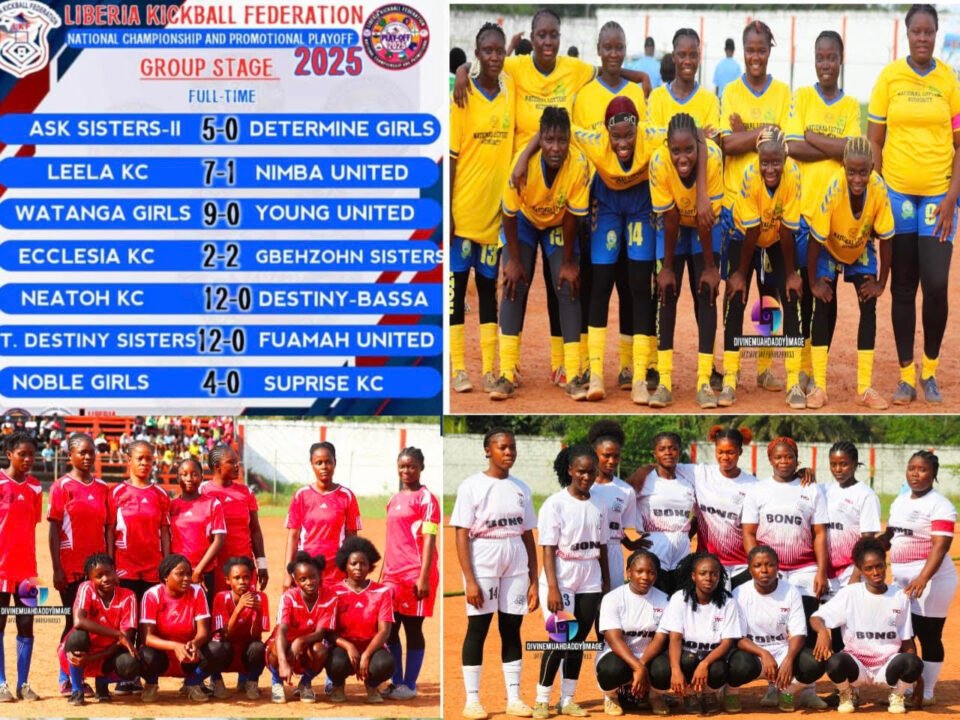 Bong County – Day One of the 2025 Liberia Kickball Federation (LKF) National Playoffs ended in drama and excitement, with 14 teams battling fiercely at the David Kuyon Sports Stadium in Gbarnga, Bong County.